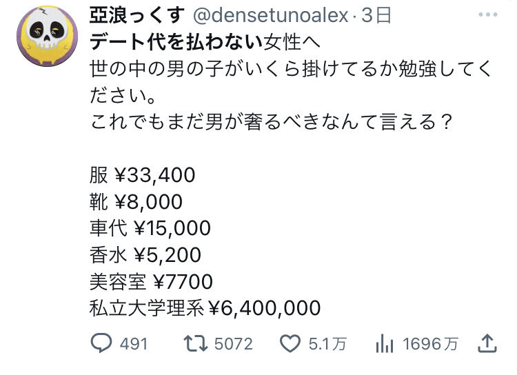 女の子はまじで見た目とかにお金かけなきゃいけないから、全額払ってくれないと困る😨