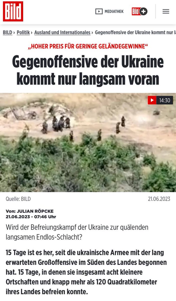 15日間にわたるウクライナの反転攻勢は耐えがたきレベルで遅い
